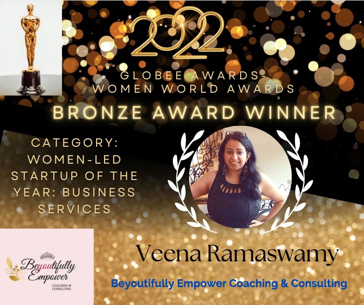 Veena is the Founder & CEO of Beyoutifully Empower Coaching & Consulting where she aims to inspire women to become the best possible version of themselves through personal, career, and leadership development. She helps ambitious young people to overcome self-doubt, unleash their inner power, and turn their dreams into reality. She is a 15 time award-winning entrepreneur and recently a Iconic 100 Impact 2023 honor. She recently won Business Elite ‘Under 30’ 2023 and Bronze Globee Award for Women-led Startup of the Year (Business Services) 2022. She is also recognized as the “Woman Entrepreneur to Watch for” in 2022. Aside from work, she’s been focusing on leadership development and her mission is to pave the right path for the next generation of girls to break that glass ceiling and to create change in tech sector. She is also an award-winning thought leader and got the opportunity to network with industry leaders from top tech companies such as Google and Microsoft as well as senior executives from around the world.